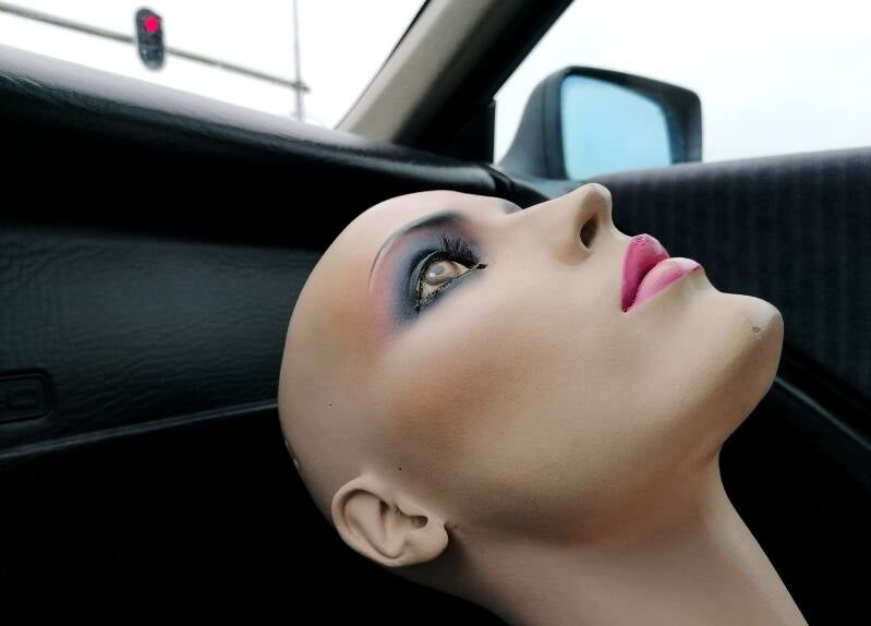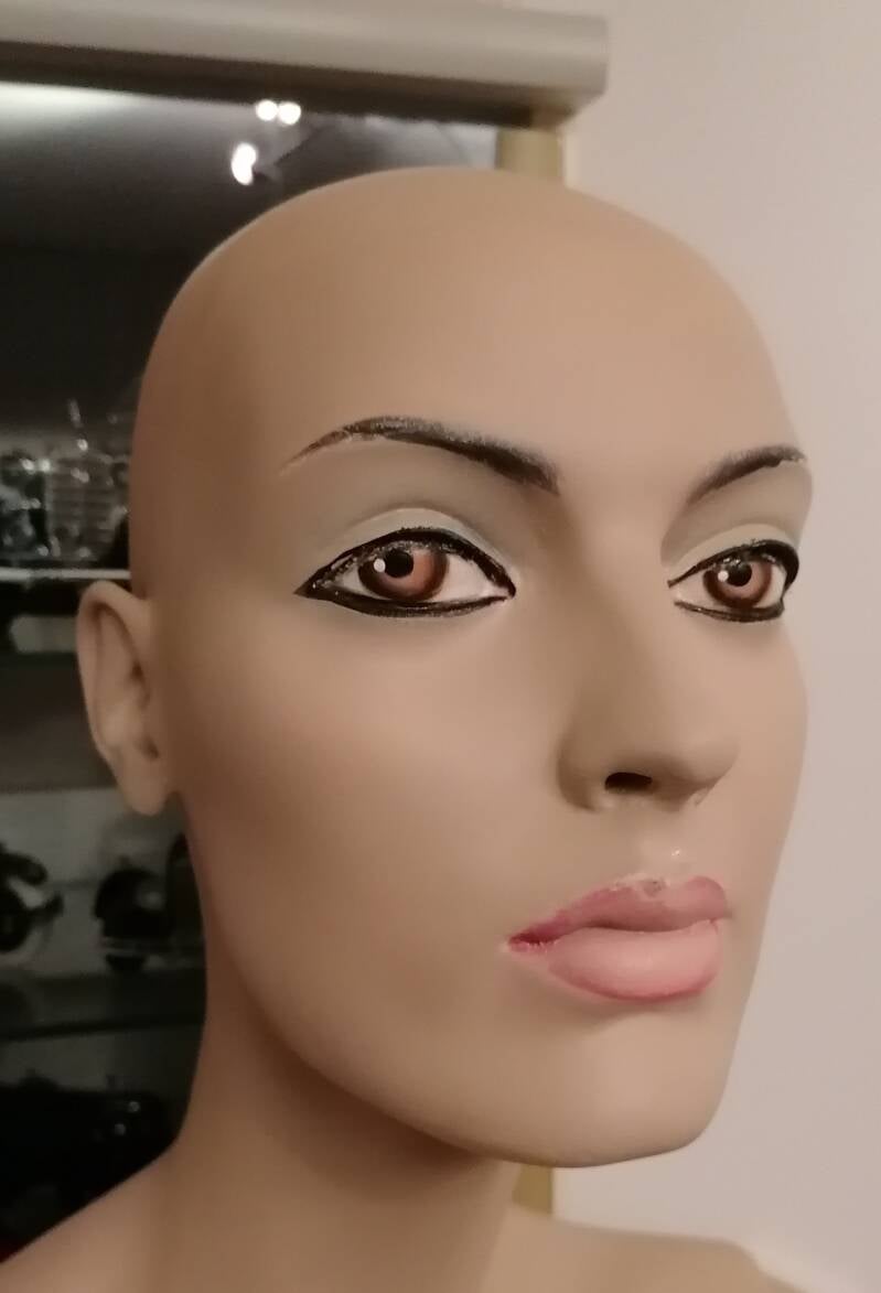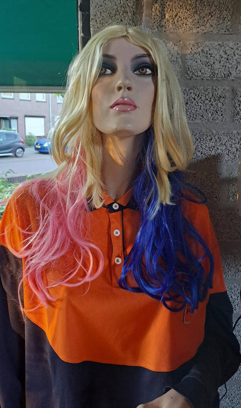 Deze mannequin bleek een ex-lingerie model te zijn die nadat ze de winkelruiten moest verlaten een baantje kreeg als manusje van alles op een school. Ze moest voor paashaas, zwarte piet en postbode spelen. Toen ik haar ophaalde bleek ze ook net als Harley een 'Adel Rootstein' te zijn . Haar code was V6. ofwel een kopie van topmodel Catherine Dyer.