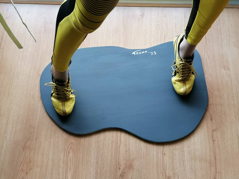 Ze had een zwaar leven gehad qua 'huid en gewrichten, na een hoop glasvezelreparaties kon ik niet anders dan haar volledig te herschilderen. ik Heb haar tot 3 maal van top tot teen geschilderd met acryl verf en daarna een dunne blanke laklaag gespoten voor een realistischere glans. Toen ik haar basis afhad ben ik gaan denken over een filmthema.