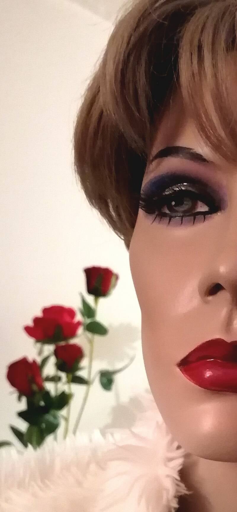 Is blij met een kort(Rootstein) kapsel en haar make up is zoveel mogelijk met rust gelaten. In de verte heeft ze wat weg van Jamie Lee Curtis in de jaren 80/90. Maar voorlopig blijft ze mannequin in ere herstelt.